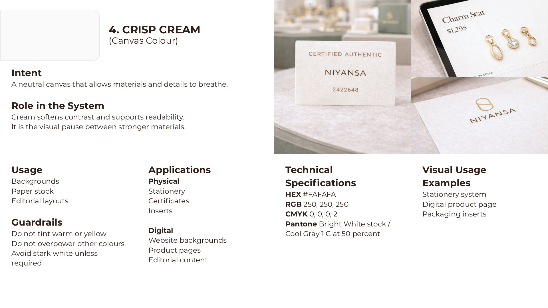 NIYANSA is a modern Indian demi-fine jewellery brand created to free women from "gold dependency" - the cultural habit of buying heavy, traditional pieces that sit locked in a safe. Instead, NIYANSA offers intelligent, durable daily luxury designed for the modern professional. What began as a naming and logo sprint evolved into a comprehensive brand engineering project. Rooted in the core philosophy of "Fate in Form," the bespoke name merges Niyati (Sanskrit for Fate) with Ansa (Latin for The Loop). The resulting visual identity embraces a "Velvet Dagger" aesthetic; perfectly balancing the soft, fluid grace of everyday luxury with the rigid, mathematical precision of an engineered hallmark. From strategic domain acquisition to a mathematically constructed heirloom logo, bespoke material palettes, and tactile packaging experiences, this project delivers a complete brand "Constitution" built to stand the test of time.