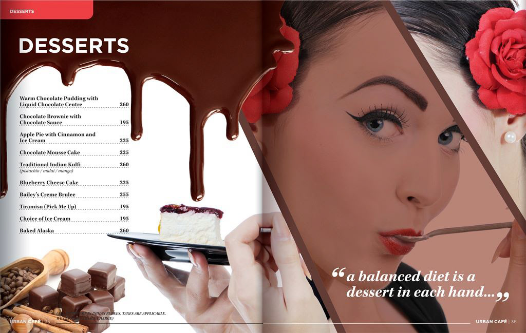 A Restaurant Menu designed to look like a magazine for 'Urban Cafe' which was associated with the fashion fraternity in New Delhi.